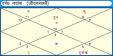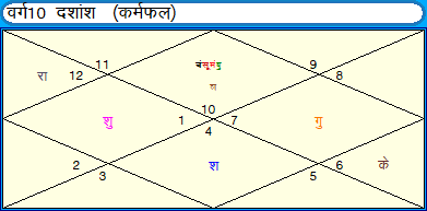 जन्मकुंडली का आत्मकारक बुध है और अमात्यकारक सूर्ये है। डी – 9 में ये एक दूसरे से 2 /12 स्थान पर हैं। यह व्यवसाय में संकट का संकेत है।नवांश में दशमेश व सप्तमेश अष्टम भाव में राहु -केतु अक्ष में है। दशांश में दशमेश चतुर्थ भाव में द्वादशेश से दृष्ट है। इस प्रकार डी – 1 ,डी – 9 और डी – 10 तीनों कुंडलियों में दशमेश का सम्बन्ध त्रिक भावों से बना हुआ है।
