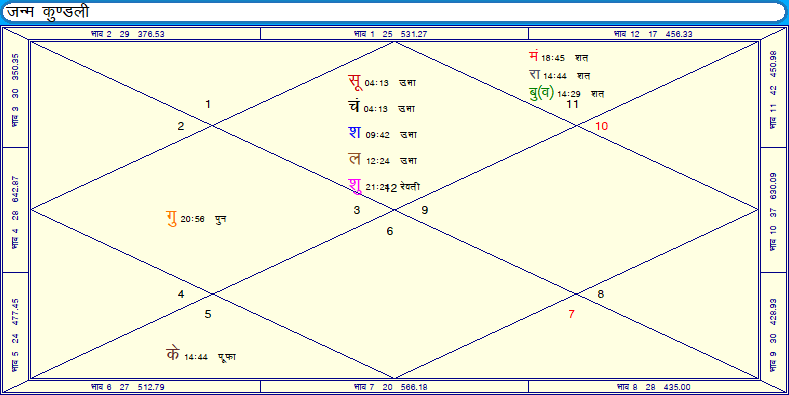 होने से योगकारक है। गुरु की दृष्टि छटे ,आठवें और दसवें भाव पर है। मंगल की दृष्टि दूसरे भाव पर ,पांचवें भाव पर व छटे भाव पर है। चंद्रमा तृतीयेश होकर दसवें भाव में राहु -केतु अक्ष में है। बुध नीच राशि में है। छटे भाव पर गुरु ,मंगल ,शुक्र व राहु की दृष्टि है। भारत के सम्बन्ध कुछ देशों के साथ तनावपूर्ण हो सकते हैं। अष्टम भाव पर शनि ,केतु व गुरु की दृष्टि है। प्राकृतिक आपदाओं ,हिंसक गतिविधियों व लड़ाई-झगड़ों के कारण जन -धन की हानि होगी। आर्थिक मामलों में व व्यापारिक गतिविधियों में असमंजस की स्थिति बनी रहेगी। देश के अंदर और बाहर सीमाओं पर अशांति /तनाव का वातावरण रहेगा। बहुत प्रयास के बाद भी सरकार स्थिति को संभालती ही नजर आएगी। सरकार पर संकट बना रहेगा। न्यायपालिका और सरकार में विरोधाभास पैदा हो सकता है।अप्रैल 2026 में मंगल -शनि की युति से और नवंबर 2026 से मार्च 2027 तक शनि पर मंगल की दृष्टि के कारण युद्ध ,प्राकृतिक आपदाओं ,दुर्घटनाओं व सांप्रदायिक उन्माद का भय बना रहेगा।भारत की उत्तरी सीमा पर युद्ध का वातावरण बना रहेगा। पड़ोसी देशो में भी अशांति रहेगी।फरवरी -मार्च 2027 में विश्व के व्यापारिक वातावरण में हलचल रहेगी।